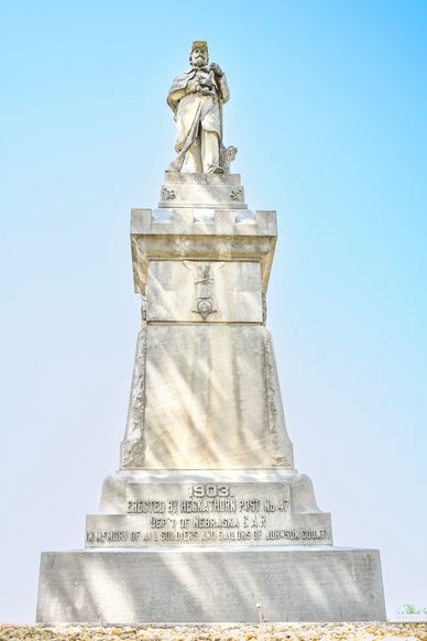 The Monument was erected in 1903 to honor all the soldiers and sailors from the county who served from the local post of the Grand Army of the Republic. It is located by the Courthouse.